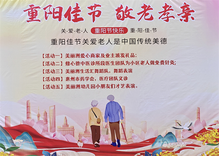 重阳敬老,情暖金秋。为弘扬中华民族尊老、敬老、爱老、助老的传统美德,在重阳节之际,一场以“情暖重阳,健康相伴”为主题的长者公益科普与义诊活动于10月29日在美丽洲花园成功举办。本次活动由美丽洲花园物业管理处主办,惠州市药学会承办,市药学会联合会员单位--惠州市中医医院、董德堂中医诊所、片仔癀国药堂以及兄弟单位惠州市致美口腔医院、惠州市爱尔眼科医院、惠州市明荃化妆品有限公司、贸耕实业(惠州)有限公司等多家单位共同协办,旨在关注长者健康,传递社会温暖,提升老年群体的生活质量和幸福感。