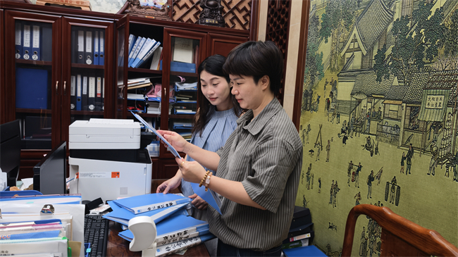 左一市汕尾商会党支部书记兼办公室主任黄慧珊、左二市药学会党支部书记程丽云