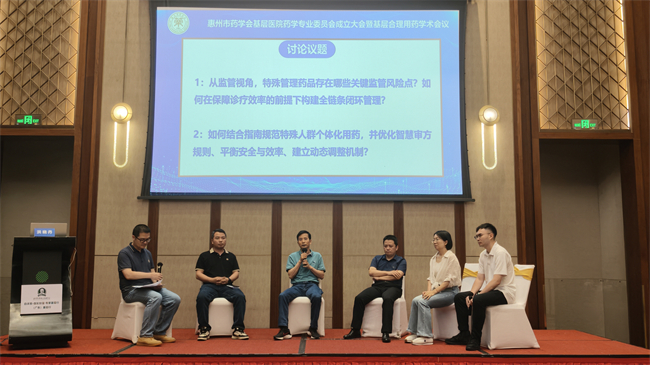 报告结束后,会议进入专题讨论环节,由洪晓丹教授主持,徐汉明教授、林剑威教授、罗标荣教授、宏峰教授、龙娜教授共同探讨。围绕基层药学实践中的难点、热点问题,参会代表结合自身工作实际,各抒己见、畅所欲言,展开了热烈讨论,凝聚了发展共识,为推动基层药学事业发展提出了诸多切实可行的建议。进一步凝聚了发展共识,明确了工作方向,为基层医院药学专业委员会后续工作的开展奠定了坚实基础。